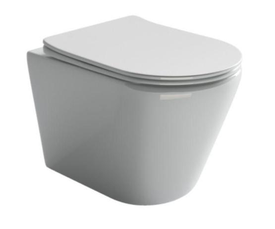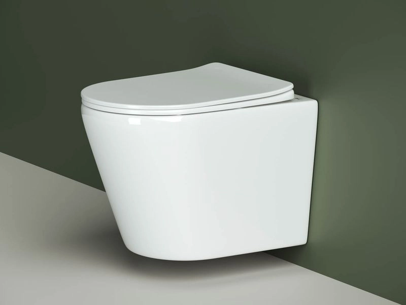 Подвесной унитаз HighLight Rimless, глубокий смыв, с крепежом для полностью скрытого монтажа, ультра тонким с сидением и крышкой с функцией плавного закрытия