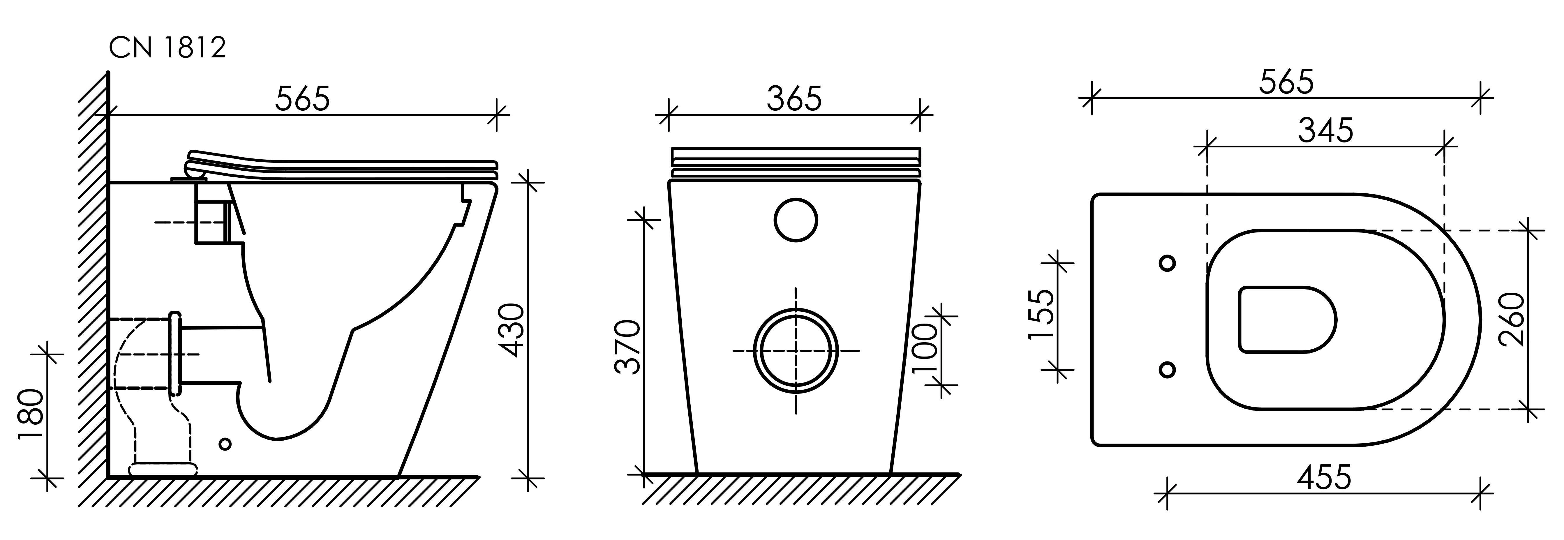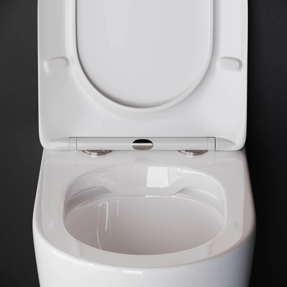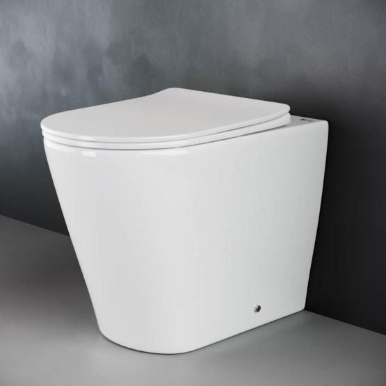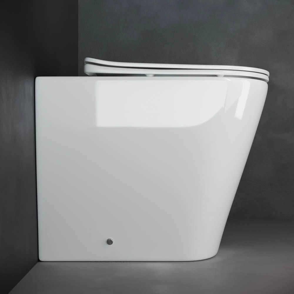 Напольный пристенный унитаз-соло Highlight Rimless, глубокий смыв, горизонтальный (универсальный) выпуск, с крепежом, ультра тонким с сидением и крышкой с функцией плавного закрытия, дюропласт