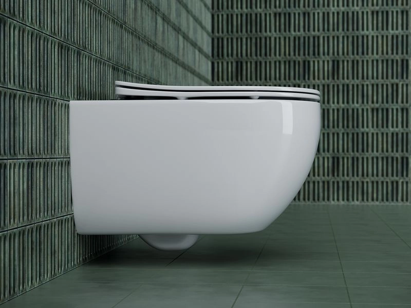Подвесной унитаз Long Rimless, глубокий смыв, с крепежом для полностью скрытого монтажа, ультратонким сидением и крышкой с функцией плавного закрытия, дюропласт