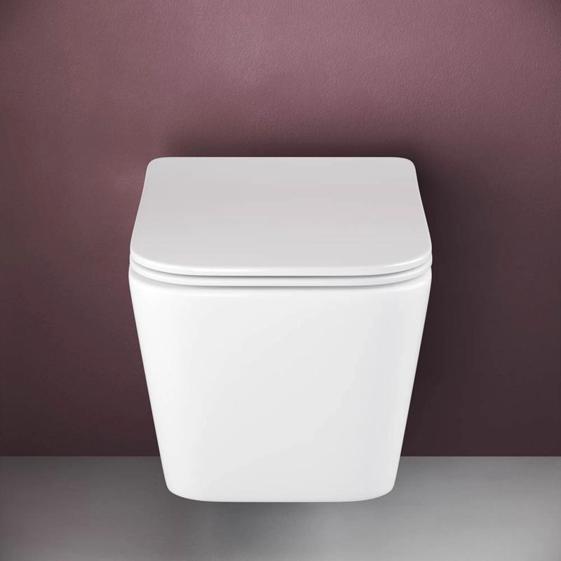 Подвесной унитаз Metric Rimless, глубокий смыв, с крепежом для полностью скрытого монтажа, ультра тонким с сидением и крышкой с функцией плавного закрытия, дюропласт