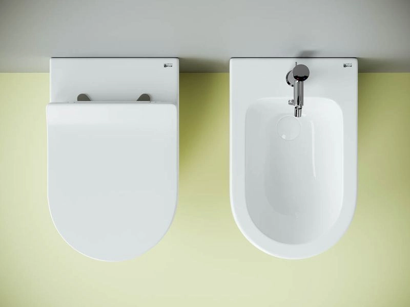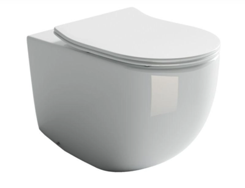 Напольный пристенный унитаз-соло Metropol Rimless, глубокий смыв, горизонтальный (универсальный) выпуск, с крепежом, ультра тонким с сидением и крышкой с функцией плавного закрытия, дюропласт
