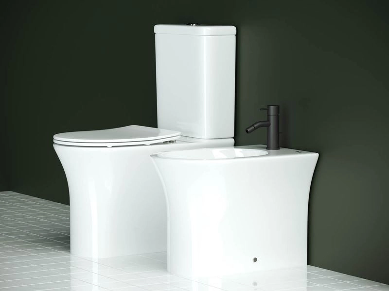 Напольный пристенный унитаз с бачком Star Rimless, двойной смыв 3/6, нижняя подводка глубокий смыв, горизонтальный (универсальный) выпуск, с крепежом, с ультра тонким сидением и крышкой с функцией плавного закрытия, дюропласт