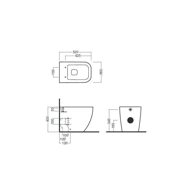Приставной унитаз Hatria BIANCA Y1VA01, универсальный слив, крепление в комплекте, размер 36х52 см, цвет белый. Крышка сидение приобретается отдельно.