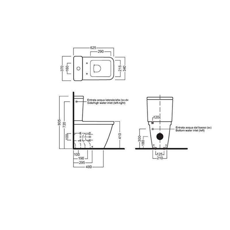 Унитаз моноблок с универсальным сливом Hatria ERIKA PRO Q Y1BV01, размер 62.5х34 см, цвет белый. Крепления, бачок, крышка сидение приобретаются отдельно.