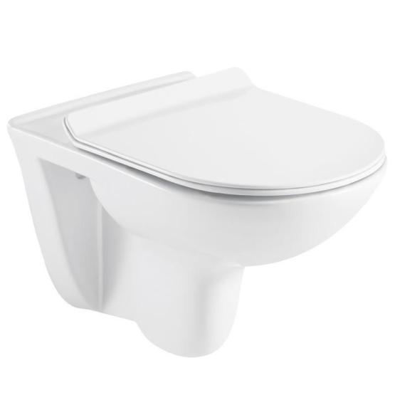 Унитаз имеет уже установленное сиденье из практичного дюропласта, которое оснащено функцией микролифта, это обеспечивает его плавное и бесшумное движение.
