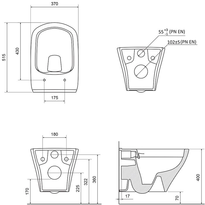 - аксессуары: сиденье для унитаза Classic или Classic Slim, монтажный блок, кнопки слива