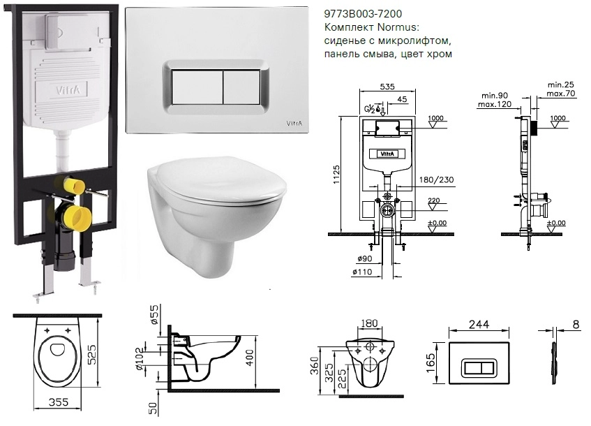 Комплект Normus: сиденье с микролифтом, панель смыва, цвет хром