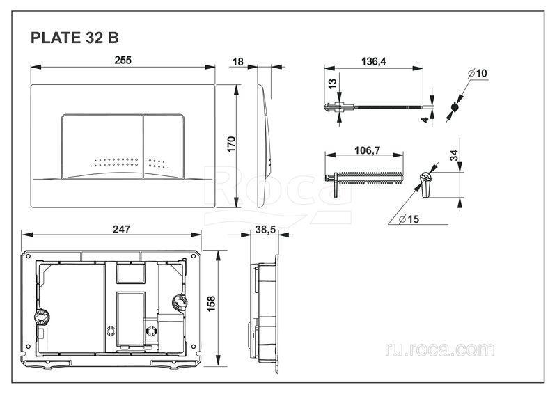 Кнопка слива для инсталляций Roca с двумя режимами слива воды ведущего мирового бренда Roca. Выполнена из высококачественного ABS-пластика. В комплект входит кнопка слива, рамка под клавишу, крепежные элементы и толкатели сливного механизма инсталляции.