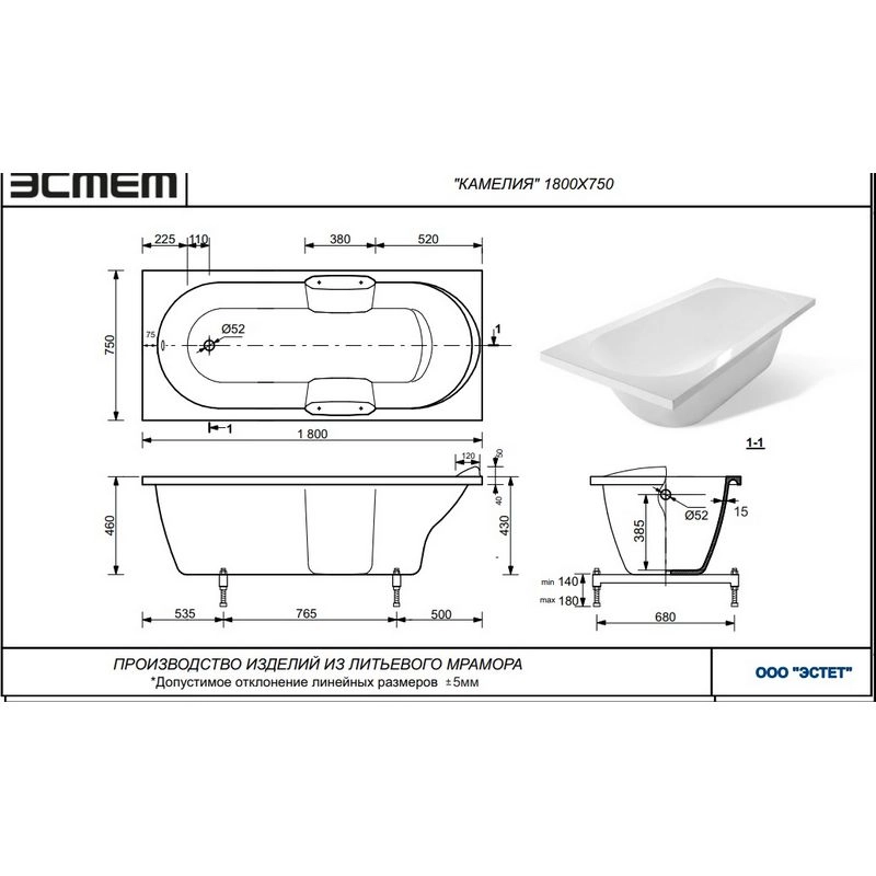 Состав изделия: композитный материал 80% мраморной крошки, 15% полиэфирных смол, 5% присадок.