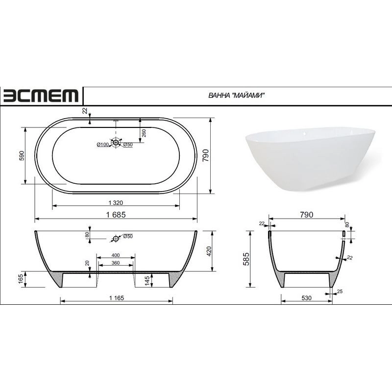 Подставка для ванны, слив перелив и панели приобретаются отдельно.