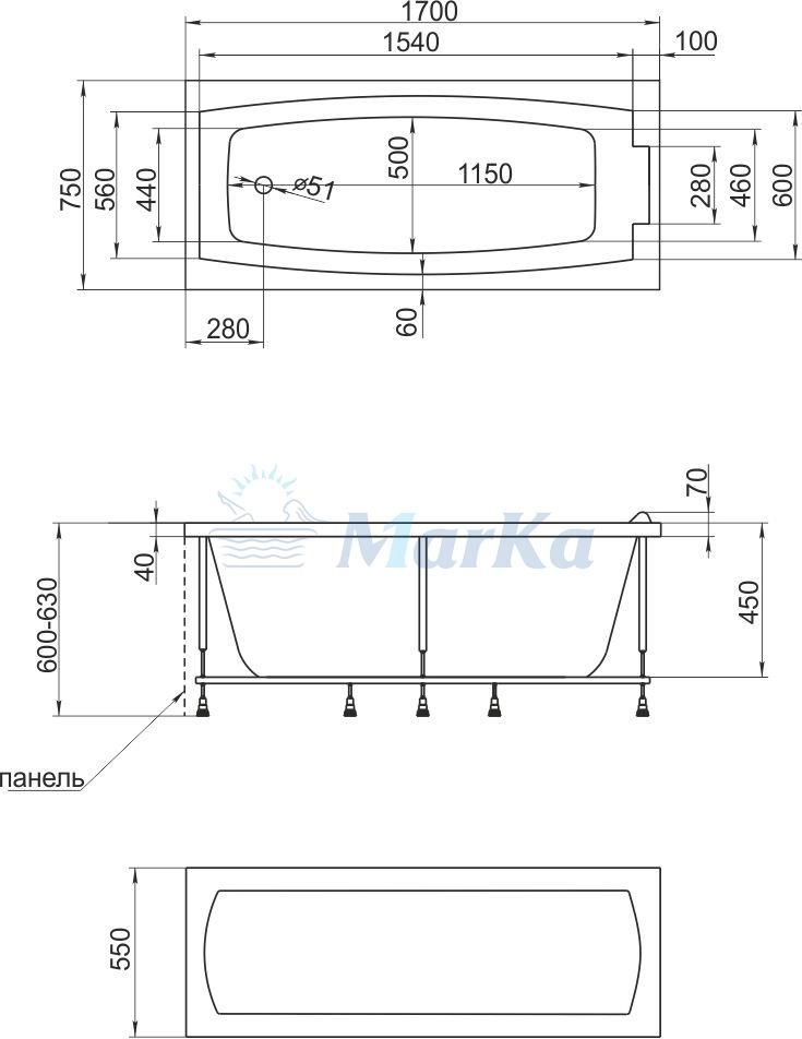 - Акриловая ванна Aelita 170x75 без каркаса, панелей и слива-перелива.