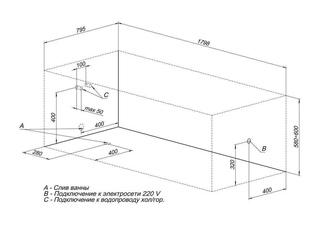 Устройство перелива есть в комплекте. Большой объем ванны 250 л. Материал - Акриловый лист европейской марки Lucite 6 мм. ДОП.КОМПЛЕКТАЦИЯ приобретается отдельно.