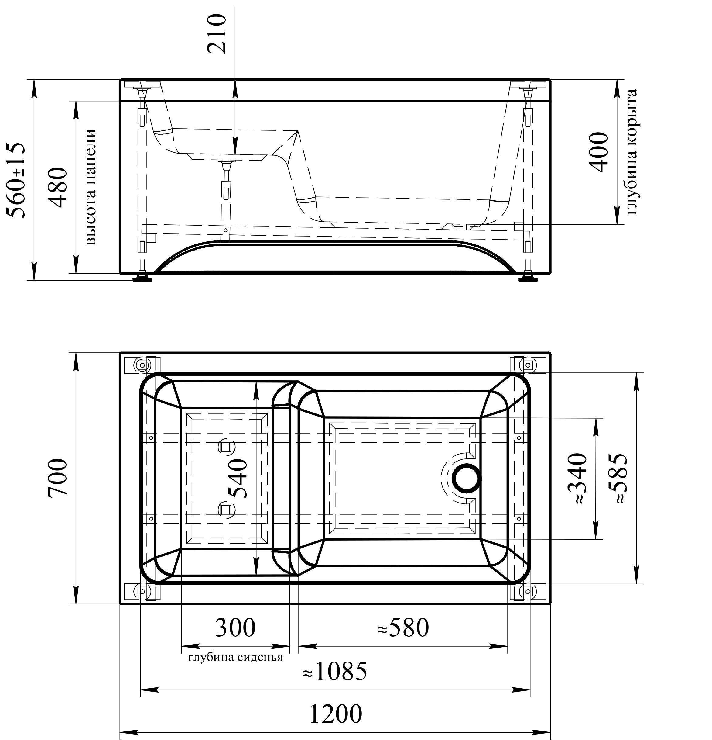 Чаша: 100% сантехнический акриловый лист, армирующий слой из стеклоровинга, влагостойкая ДСП 16мм Рама: Бесшовная стальная труба, сечением 25х25мм и толщиной стенки 1,5мм