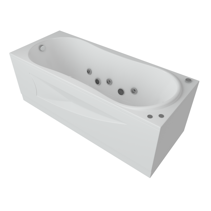 При изготовлении ванн используется 100% литиевой акриловый лист немецкого производства не имеющий запаха. При покупке ванн Компании «Акватек» вы всегда можете рассчитывать на 100% качество изделия и пол- ное сервисное обслуживание. Ванна с гидромассажем (6 боковых форсунок) на сварном алюминиевом каркасе в комплекте с сливом-переливом.
