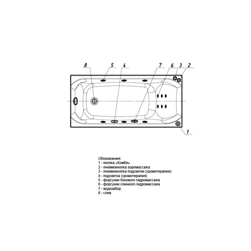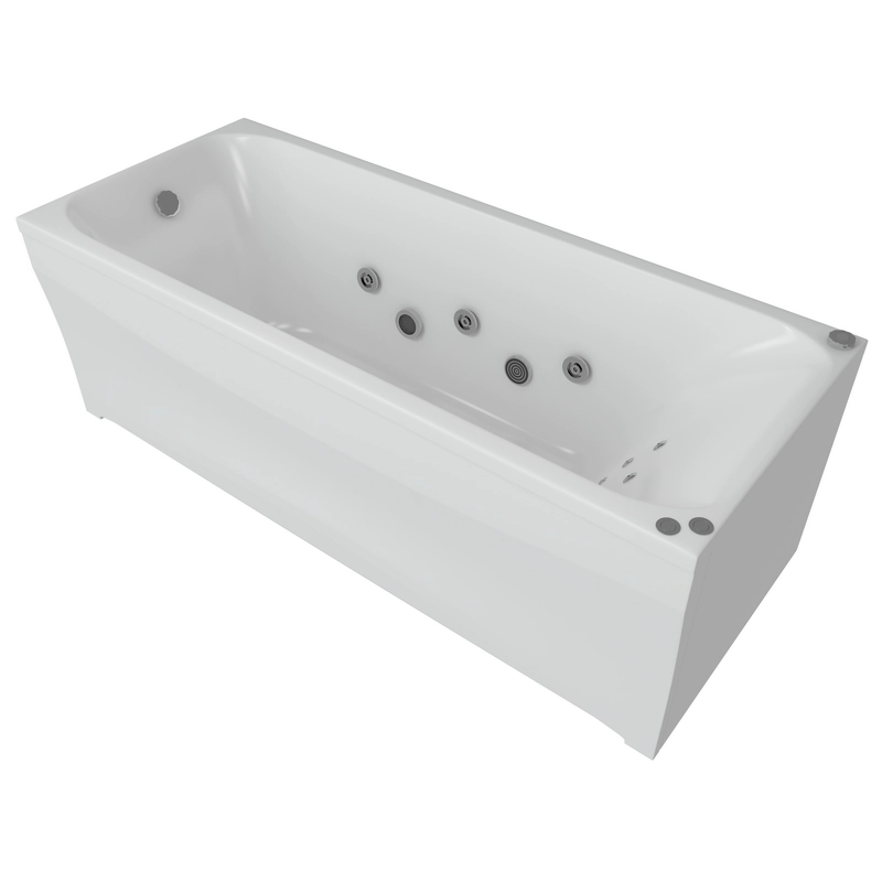 При изготовлении ванн используется 100% литиевой акриловый лист немецкого производства не имеющий запаха. При покупке ванн Компании «Акватек» вы всегда можете рассчитывать на 100% качество изделия и пол- ное сервисное обслуживание. Ванна с гидромассажем (6 боковых форсунок) на сварном алюминиевом каркасе в комплекте с сливом-переливом.