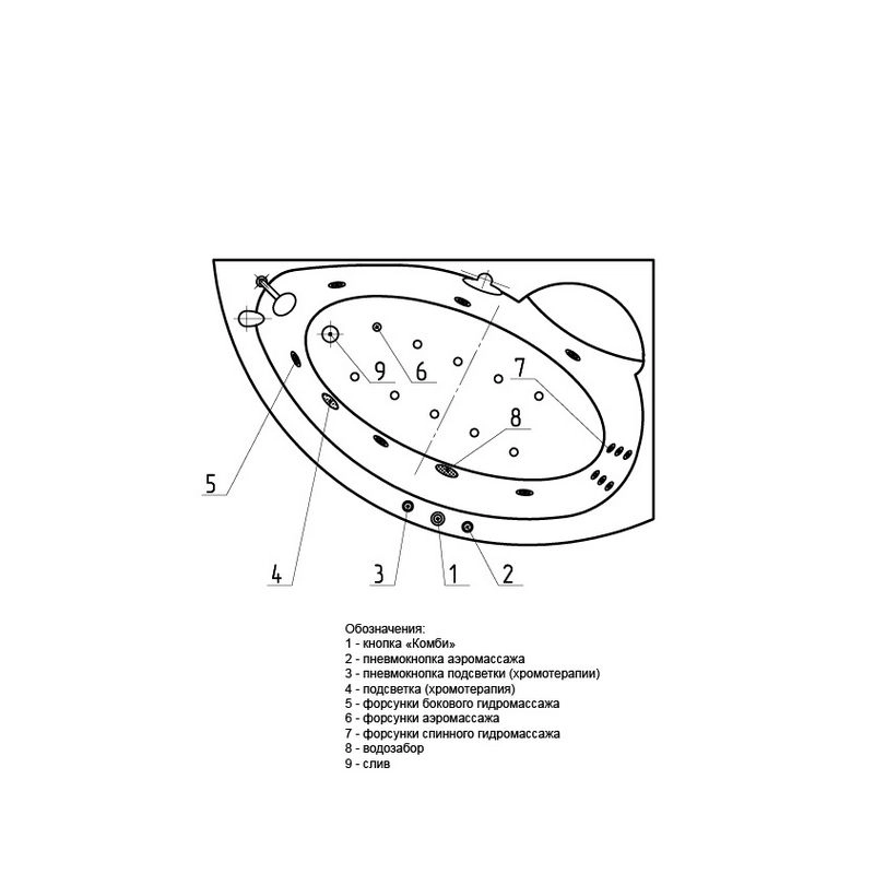 При изготовлении ванн используется 100% литиевой акриловый лист немецкого производства не имеющий запаха. При покупке ванн Компании «Акватек» вы всегда можете рассчитывать на 100% качество изделия и пол- ное сервисное обслуживание. Ванна с гидромассажем (6 боковых форсунок) на сварном алюминиевом каркасе в комплекте с сливом-переливом.