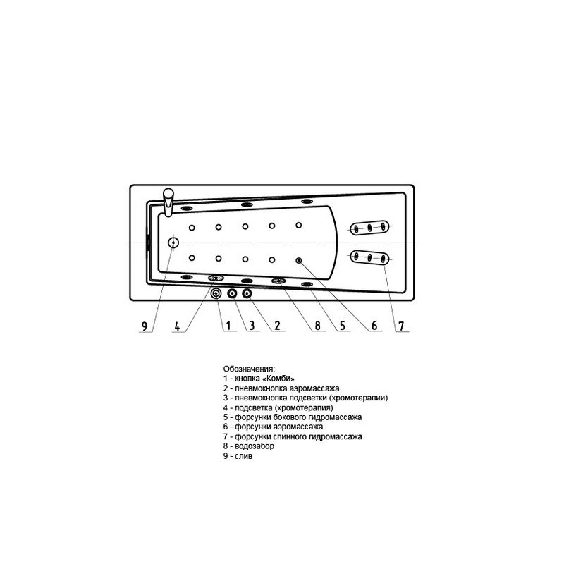 При изготовлении ванн используется 100% литиевой акриловый лист немецкого производства не имеющий запаха. При покупке ванн Компании «Акватек» вы всегда можете рассчитывать на 100% качество изделия и пол- ное сервисное обслуживание. Ванна с гидромассажем (6 боковых форсунок) на сварном алюминиевом каркасе в комплекте с сливом-переливом.
