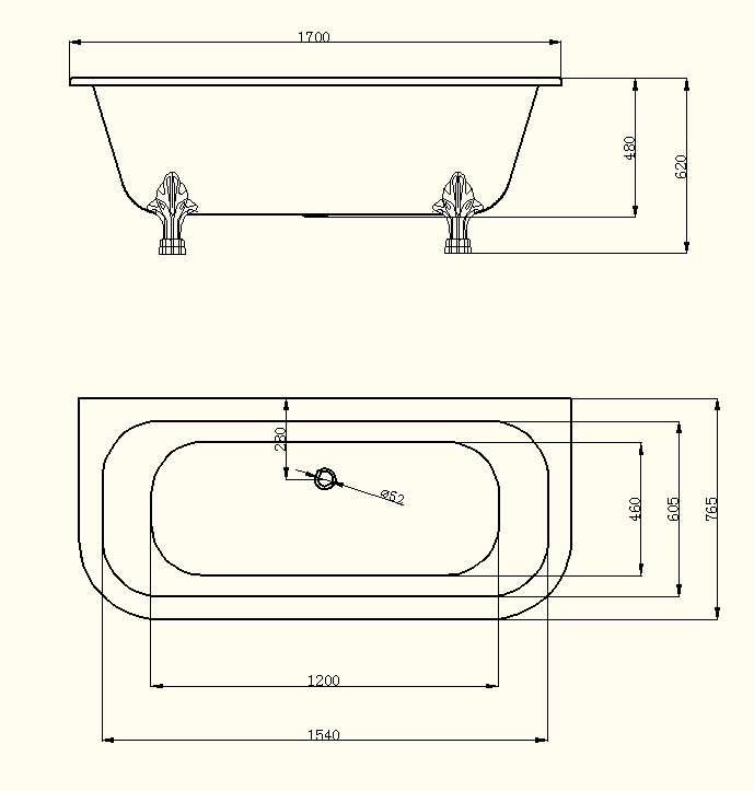 Отдельно стоящая ванна на ножках бронза. Сифон в комплектацию не входит.