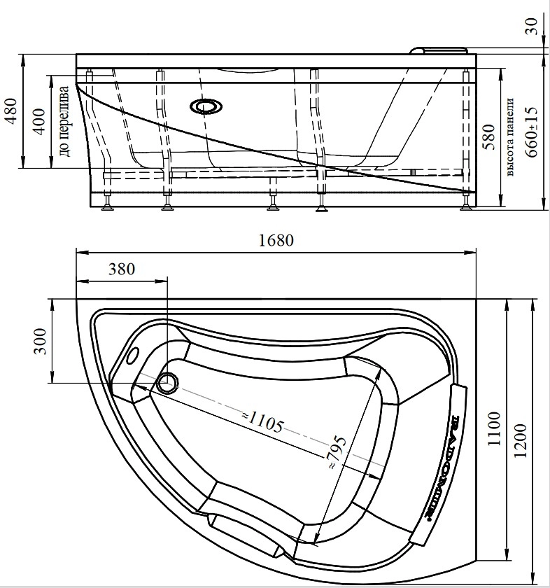 Чаша: 100% сантехнический акрил, армирующий слой из стеклоровинга, влагостойкая ДСП 16мм Рама: Бесшовная стальная труба, сечением 25х25мм и толщиной стенки 1,5мм Подголовник: полиуретан |