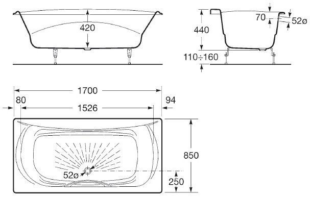 Чугунная ванна европейского производителя с многократным нанесением эмали. Надежное качество на долгие годы. Слив-перелив, ручка, подголовник и ножки заказывается отдельно.