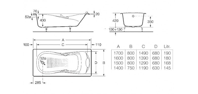 Чугунная ванна европейского производителя с многократным нанесением эмали. Надежное качество на долгие годы. Слив-перелив, ручки и ножки заказываются отдельно.