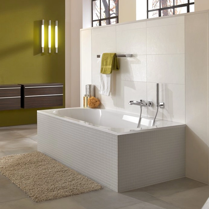 Входит в объем поставки: Комплект ножек для ванны (самоклеящихся) входит в поставку, регулируются от 145 - 180 мм. Не входит в объем поставки: Необходим удлиненный слив/ перелив. Техническая информация: Система перелива может быть расположена на одной из 3-х сторон. В поставку включено сверло для просверливания отверстия под перелив. При комплектации ванны гидромассажной системой перелив расположен на технической стороне.без отверстия и слива-перелива