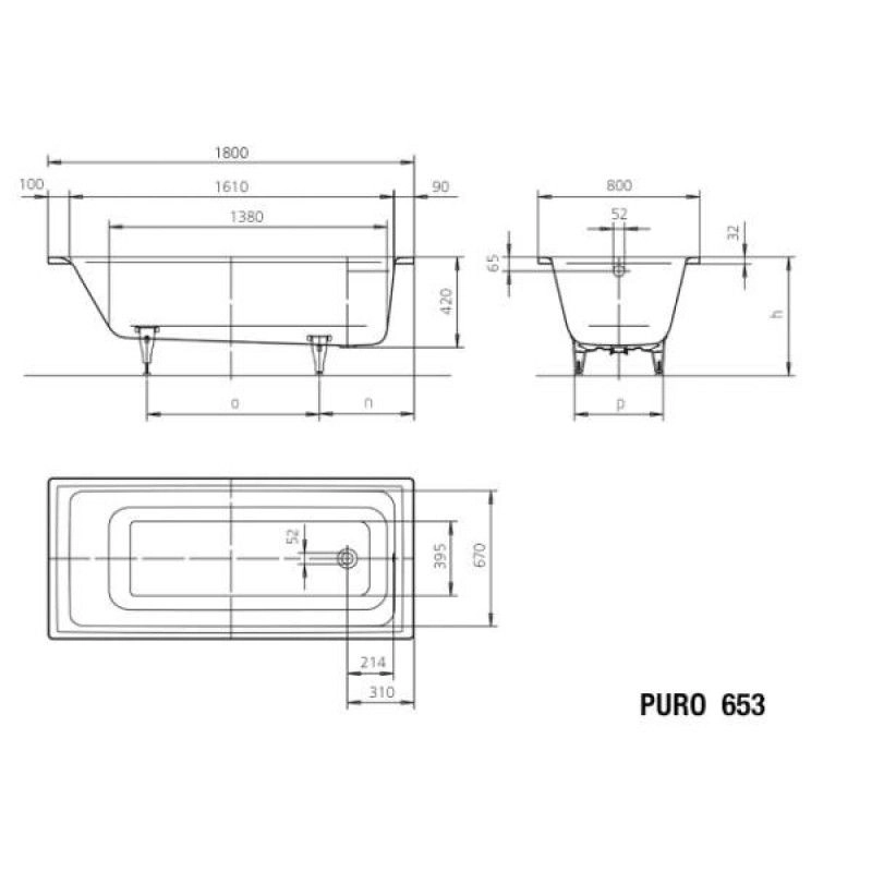 PURO Ванна стальная 180х80х42 см. 3.5 мм. KALDEWEI Сталь-эмаль KALDEWEI сохраняет свой первоначальный цвет, не выцветая и не желтея.