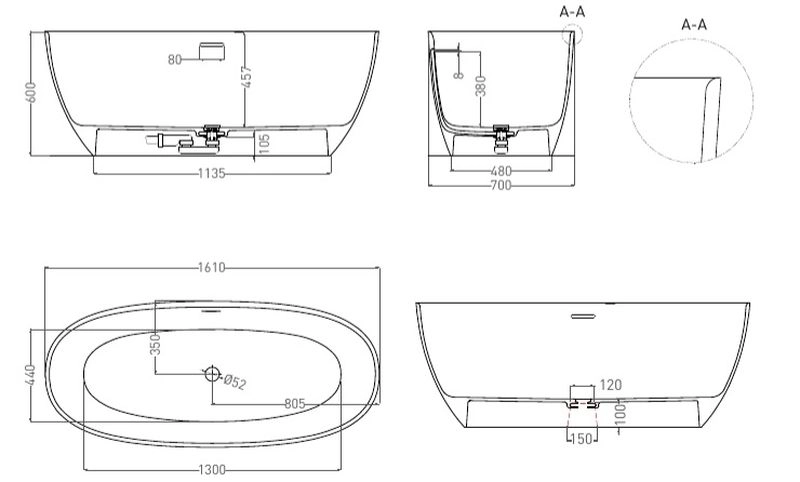 | 101924M | Salini ALDA Ванна отдельностоящая 1600х700х575мм, донный клапан, сифон, слив-перелив, мат-л: S-Stone, матовый, белый. Фурнитура: белая. | 1 | SALINI | ALDA Nuova | А0002468925 |