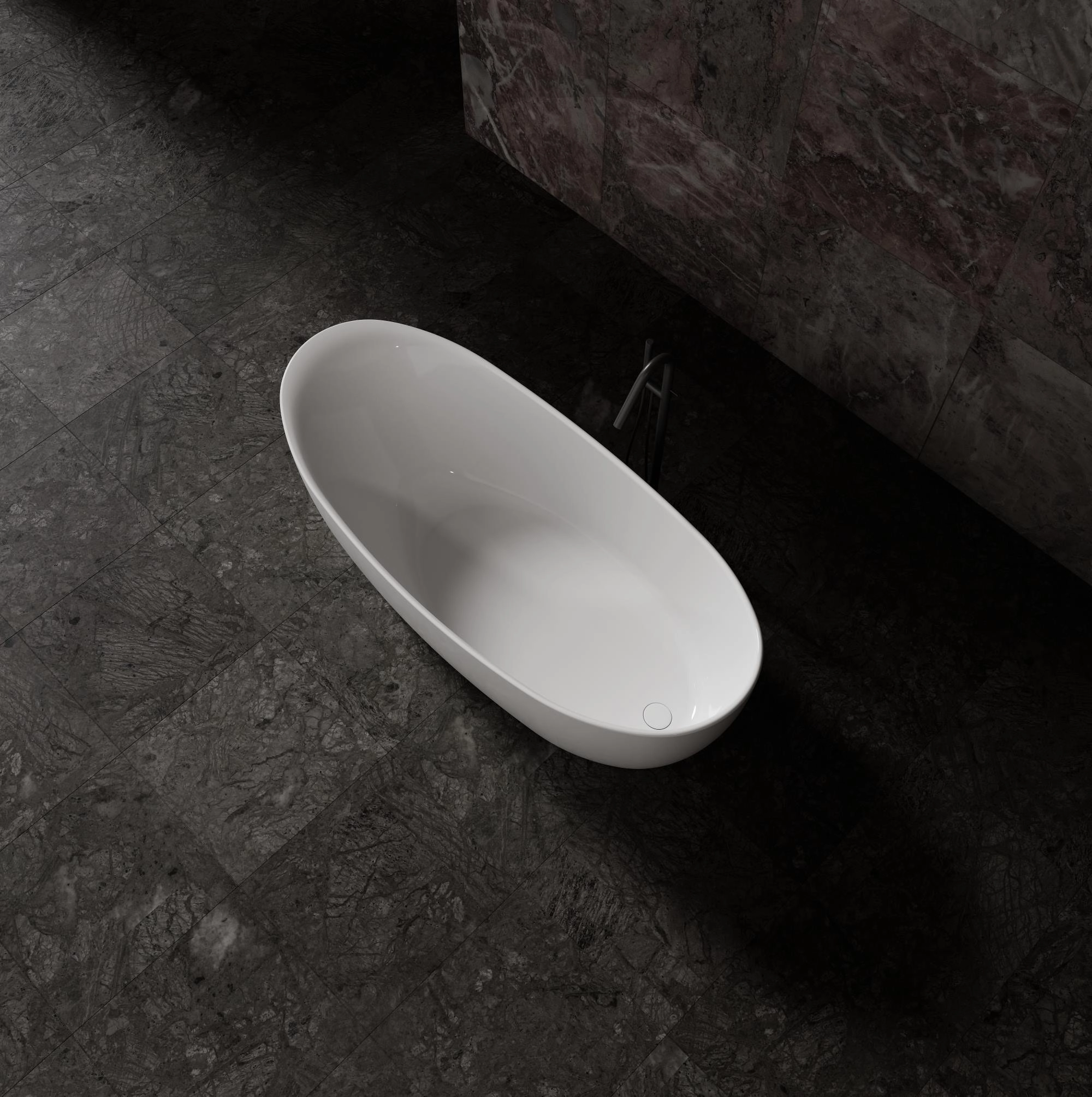 Ванна изготовлена из современного композитного материала Solid Surface, в состав которого входят природные минералы (гидроксид алюминия), связующие полиэфирные смолы и натуральные пигменты. В отличии от других материалов из искусственного камня изделия из Solid Surface имеют полностью однородную структуру, не нуждаются в дополнительном покрытии и могут легко восстанавливаться в случае повреждения или царапин в домашних условиях. Изделия из материала Solid Surface имеют бархатную, матовую поверхность и премиальный вид. слив-перелив в комплекте белый