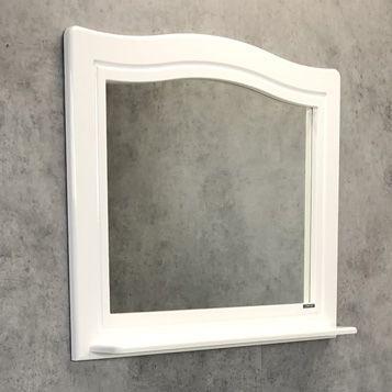Большое зеркало с полочкой в обрамлении фигурной рамы из МДФ покрытого белой глянцевой эмалью.