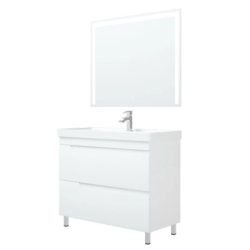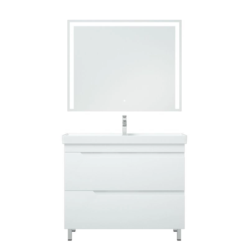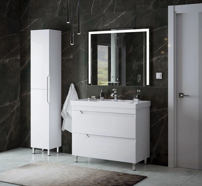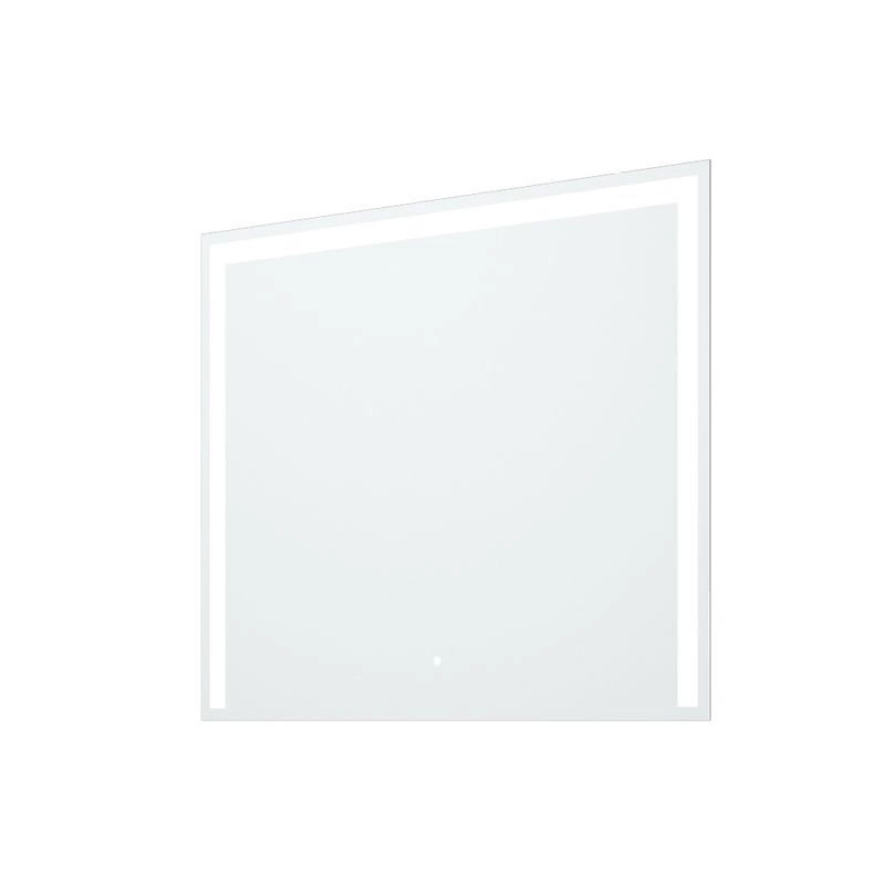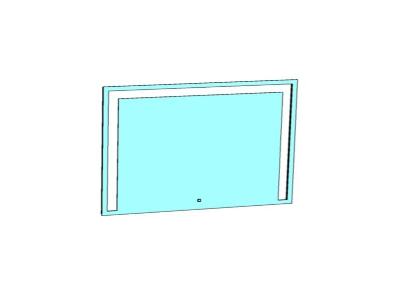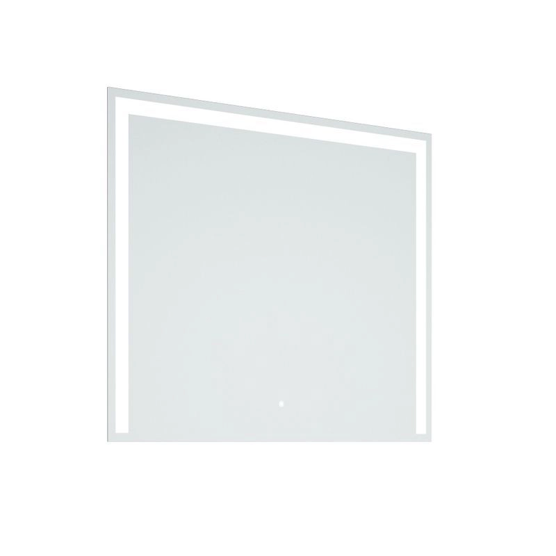 Зеркало с LED-подсветкой и сенсорным выключателем с регулировкой яркости. Квадратная кнопка. Ширина 1000, высота 800 мм. С отсутпом в 25 мм от края, по трем сторонам зеркала идёт полоса пескоструя шириной в 50 мм. Подсветка осуществляется при помощи нажатия кнопки. Существует возможность регулировки освещенности (делать подсветку ярче или темнее). Класс защиты: IP67. Класс энергетической эффективности: A++. Серебряное зеркало, стекло высшего качества M1. AC/DC трансформатор.