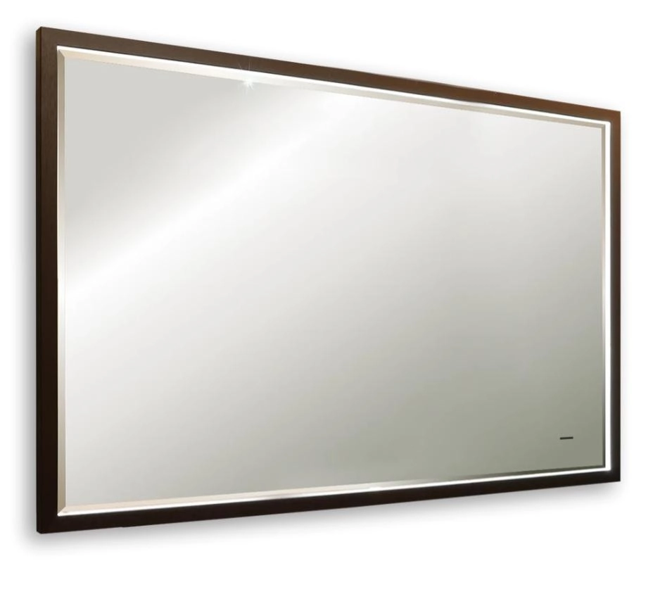 Благородный характер модели сформирован особым конструктивным решением. Металлическая рама тёмно-коричневого цвета с матовой текстурой смотрится надёжно и респектабельно. Акцентная подсветка по внутреннему периметру рамы, управляемая бесконтактным выключателем с функцией диммера, смягчает строгость дизайна и добавляет зеркалу элегантности. Оно хорошо гармонирует с правильной геометрией упорядоченных интерьеров вне времени — классики и неоклассики, а также подчеркнёт рациональность современного минималистичного стиля.