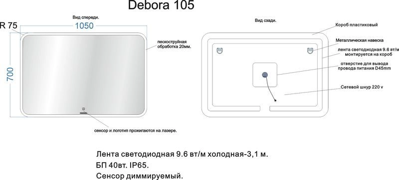 —Зеркало Veneciana DEBORA 1050х700 светодиодное