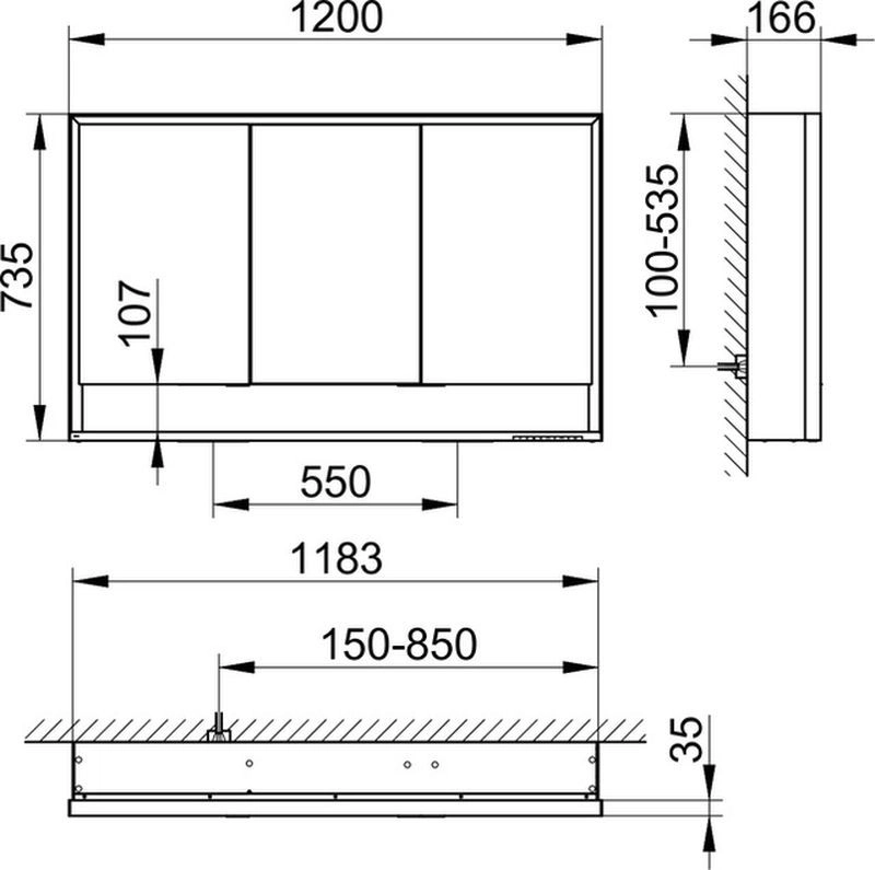 Ширина x высота x глубина 1200 x 735 x 165 mm