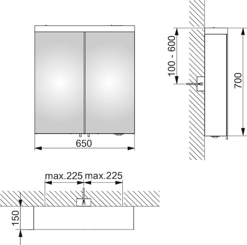 ширина x высота x глубина 650 x 700 x 150 mm