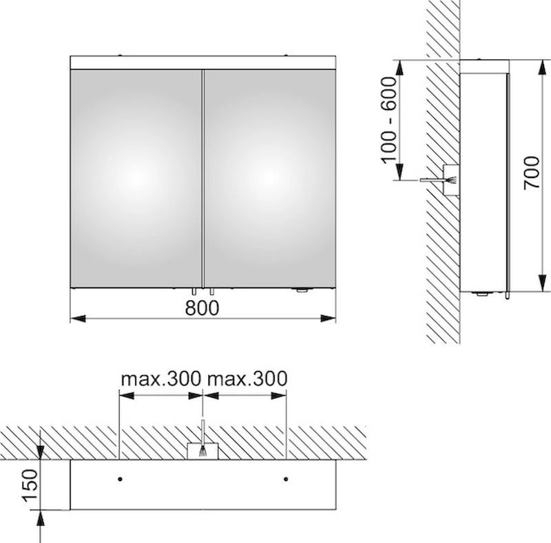 ширина x высота x глубина 800 x 700 x 150 mm