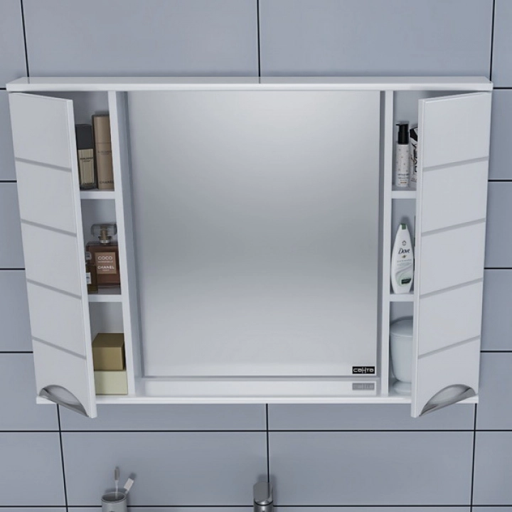 Зеркальный шкаф СаНта Родос 100 106018, с подсветкой Комплектация: светильник - 1 шт, выключатель - 1 шт, розетка - 1 шт. , ручка хром - 2 шт. На дверке петли плавного закрывания.