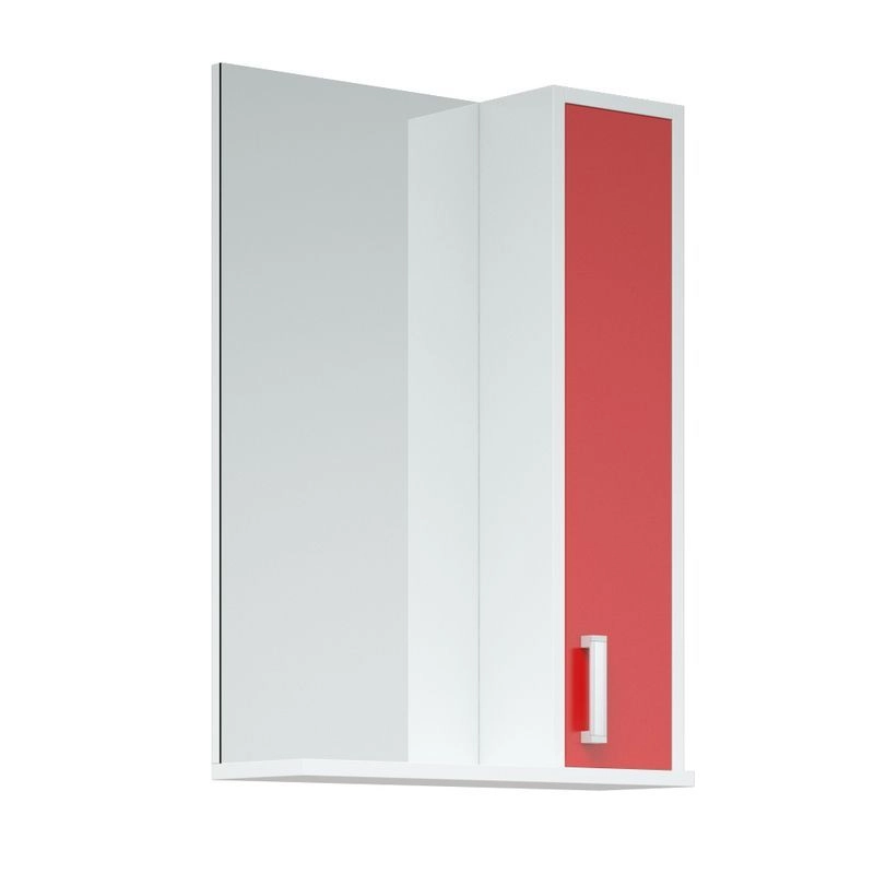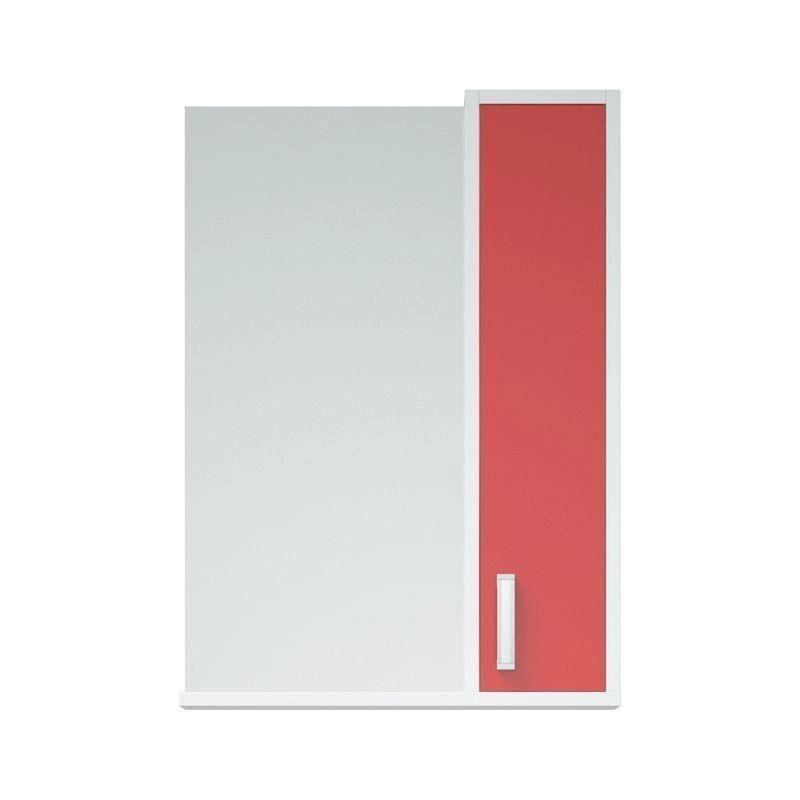 Шкаф оснащён распашной дверью справа, слева зеркало. Полка снизу. За дверью 2 вкладные полочки. Дверь - крашенная матовой эмалью. Нижняя крышка - МДФ в плёнке.