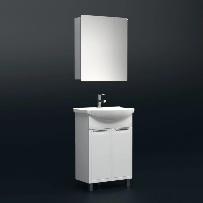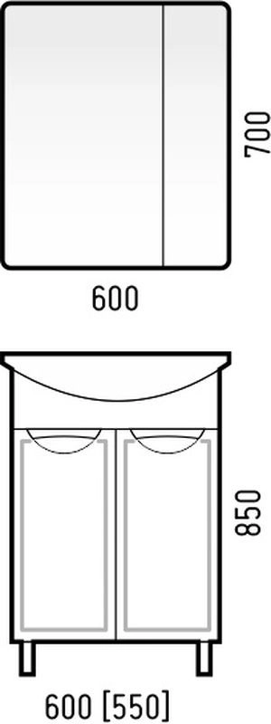 Зеркало-шкаф Монро 60 представляет собой шкаф с 2 дверцами, на которые наклеены зеркала со скругленными полированными углами. Позади дверей по 2 вкладные полки с возможностью регулировки по высоте. Петли на дверях с доводчиками. Шкаф крепится к стене при помощи мебельных подвесов. Зеркало имеет отступ по краю снизу на 19,5 мм, за который двери можно открыть.